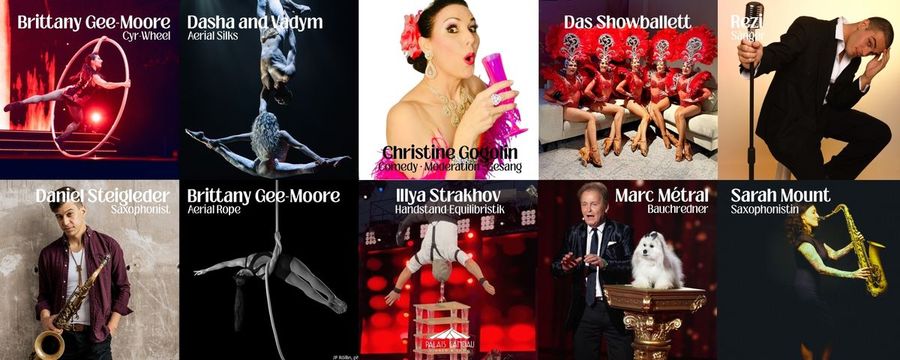 … die großartige Show mit internationalen Künstlern, unserem Showballet, Akrobatik, Comedy und Welthits.